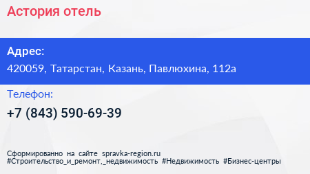 Астория, отель по адресу 420059, Татарстан, Казань, Павлюхина, 112а в дальнейшем Организация, размещена в следующих категориях:
