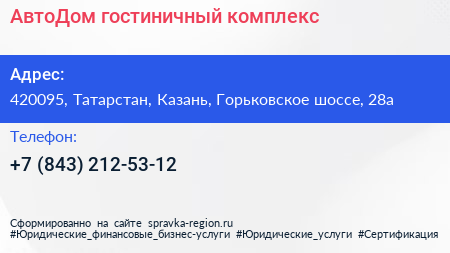 АвтоДом, гостиничный комплекс по адресу 420095, Татарстан, Казань, Горьковское шоссе, 28а в дальнейшем Организация, размещена в следующих категориях: