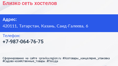 Близко, сеть хостелов по адресу 420111, Татарстан, Казань, Саид-Галеева, 6 в дальнейшем Организация, размещена в следующих категориях: