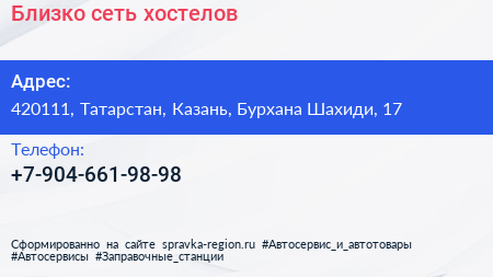 Близко, сеть хостелов по адресу 420111, Татарстан, Казань, Бурхана Шахиди, 17 в дальнейшем Организация, размещена в следующих категориях:
