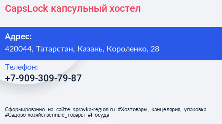 CapsLock, капсульный хостел по адресу 420044, Татарстан, Казань, Короленко, 28 в дальнейшем Организация, размещена в следующих категориях: