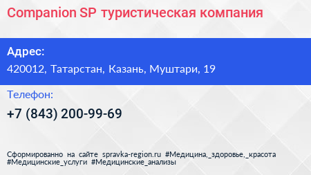 Companion SP, туристическая компания по адресу 420012, Татарстан, Казань, Муштари, 19 в дальнейшем Организация, размещена в следующих категориях: