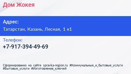 Дом Жокея по адресу Татарстан, Казань, Лесная, 1 к1 в дальнейшем Организация, размещена в следующих категориях:
