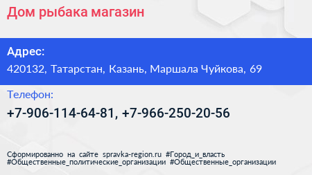 Дом рыбака, магазин по адресу 420132, Татарстан, Казань, Маршала Чуйкова, 69 в дальнейшем Организация, размещена в следующих категориях: