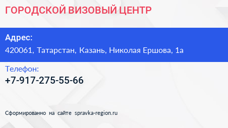 ГОРОДСКОЙ ВИЗОВЫЙ ЦЕНТР по адресу 420061, Татарстан, Казань, Николая Ершова, 1а в дальнейшем Организация, размещена в следующих категориях: