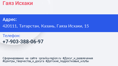 Гаяз Исхаки по адресу 420111, Татарстан, Казань, Гаяза Исхаки, 15 в дальнейшем Организация, размещена в следующих категориях: