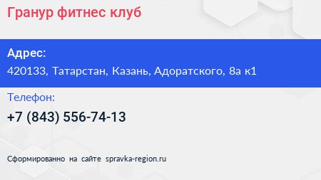 Гранур, фитнес-клуб по адресу 420133, Татарстан, Казань, Адоратского, 8а к1 в дальнейшем Организация, размещена в следующих категориях: