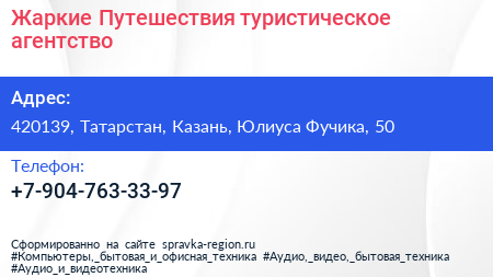 Жаркие Путешествия, туристическое агентство по адресу 420139, Татарстан, Казань, Юлиуса Фучика, 50 в дальнейшем Организация, размещена в следующих категориях: