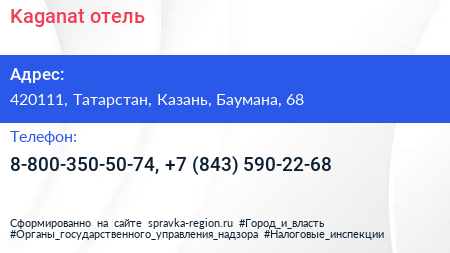 Kaganat, отель по адресу 420111, Татарстан, Казань, Баумана, 68 в дальнейшем Организация, размещена в следующих категориях: