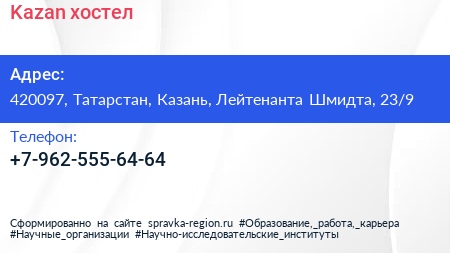 Kazan, хостел по адресу 420097, Татарстан, Казань, Лейтенанта Шмидта, 23/9 в дальнейшем Организация, размещена в следующих категориях: