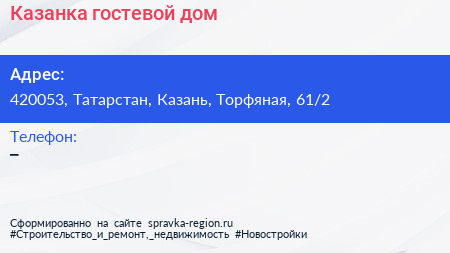 Казанка, гостевой дом по адресу 420053, Татарстан, Казань, Торфяная, 61/2 в дальнейшем Организация, размещена в следующих категориях: