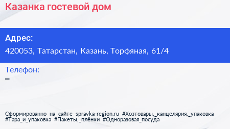 Казанка, гостевой дом по адресу 420053, Татарстан, Казань, Торфяная, 61/4 в дальнейшем Организация, размещена в следующих категориях:
