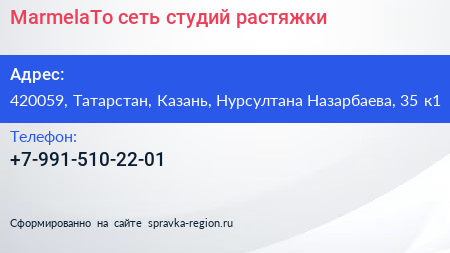 MarmelaTo, сеть студий растяжки по адресу 420059, Татарстан, Казань, Нурсултана Назарбаева, 35 к1 в дальнейшем Организация, размещена в следующих категориях: