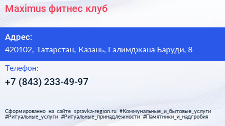 Maximus, фитнес-клуб по адресу 420102, Татарстан, Казань, Галимджана Баруди, 8 в дальнейшем Организация, размещена в следующих категориях: