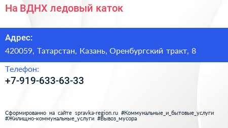 На ВДНХ, ледовый каток по адресу 420059, Татарстан, Казань, Оренбургский тракт, 8 в дальнейшем Организация, размещена в следующих категориях: