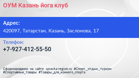 ОУМ-Казань, йога-клуб по адресу 420097, Татарстан, Казань, Заслонова, 17 в дальнейшем Организация, размещена в следующих категориях: