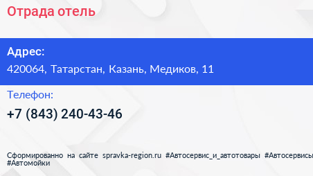 Отрада, отель по адресу 420064, Татарстан, Казань, Медиков, 11 в дальнейшем Организация, размещена в следующих категориях: