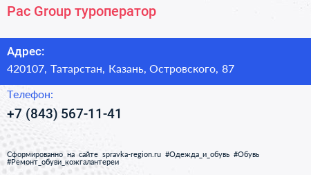 Pac Group, туроператор по адресу 420107, Татарстан, Казань, Островского, 87 в дальнейшем Организация, размещена в следующих категориях:
