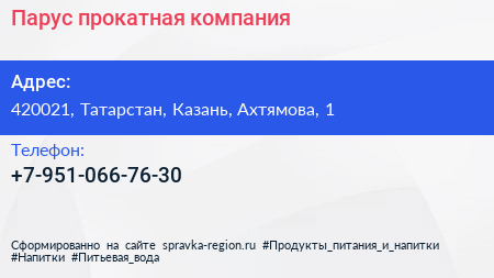 Парус, прокатная компания по адресу 420021, Татарстан, Казань, Ахтямова, 1 в дальнейшем Организация, размещена в следующих категориях: