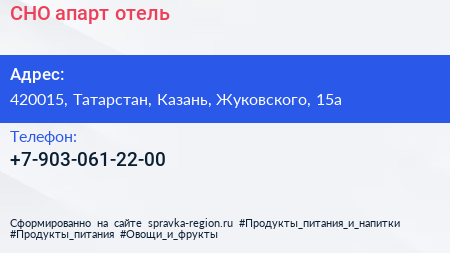 СНО, апарт-отель по адресу 420015, Татарстан, Казань, Жуковского, 15а в дальнейшем Организация, размещена в следующих категориях: