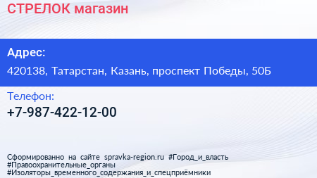 СТРЕЛОК, магазин по адресу 420138, Татарстан, Казань, проспект Победы, 50Б в дальнейшем Организация, размещена в следующих категориях: