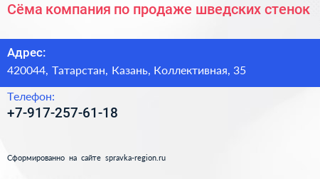 Сёма, компания по продаже шведских стенок по адресу 420044, Татарстан, Казань, Коллективная, 35 в дальнейшем Организация, размещена в следующих категориях: