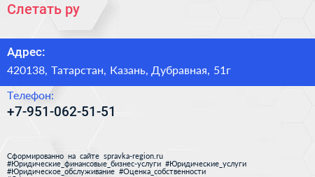 Слетать.ру по адресу 420138, Татарстан, Казань, Дубравная, 51г в дальнейшем Организация, размещена в следующих категориях: