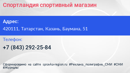 Спортландия, спортивный магазин по адресу 420111, Татарстан, Казань, Баумана, 51 в дальнейшем Организация, размещена в следующих категориях:
