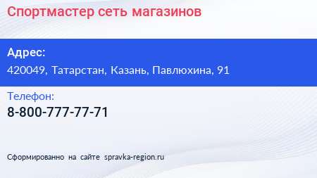 Спортмастер, сеть магазинов по адресу 420049, Татарстан, Казань, Павлюхина, 91 в дальнейшем Организация, размещена в следующих категориях: