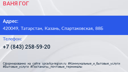 ВАНЯ ГОГ по адресу 420049, Татарстан, Казань, Спартаковская, 88Б в дальнейшем Организация, размещена в следующих категориях: