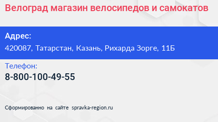 Велоград, магазин велосипедов и самокатов по адресу 420087, Татарстан, Казань, Рихарда Зорге, 11Б в дальнейшем Организация, размещена в следующих категориях: