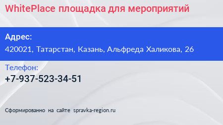 WhitePlace, площадка для мероприятий по адресу 420021, Татарстан, Казань, Альфреда Халикова, 26 в дальнейшем Организация, размещена в следующих категориях: