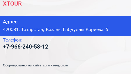 XTOUR по адресу 420081, Татарстан, Казань, Габдуллы Кариева, 5 в дальнейшем Организация, размещена в следующих категориях: