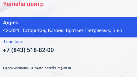 Yamaha, центр по адресу 420021, Татарстан, Казань, Братьев Петряевых, 5 к5 в дальнейшем Организация, размещена в следующих категориях: