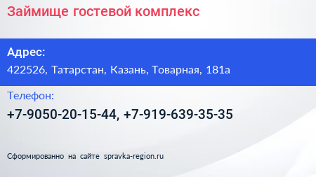 Займище, гостевой комплекс по адресу 422526, Татарстан, Казань, Товарная, 181а в дальнейшем Организация, размещена в следующих категориях: