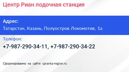 Центр Риан, лодочная станция по адресу Татарстан, Казань, Полуостров Локомотив, 1а в дальнейшем Организация, размещена в следующих категориях: