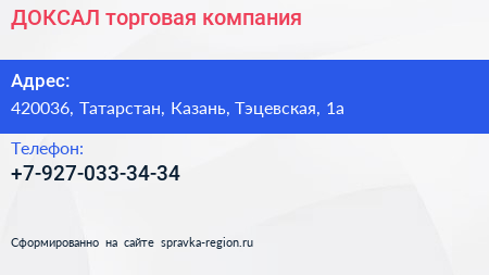 ДОКСАЛ, торговая компания по адресу 420036, Татарстан, Казань, Тэцевская, 1а в дальнейшем Организация, размещена в следующих категориях: