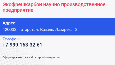 Экофрешкарбон, научно-производственное предприятие по адресу 420033, Татарстан, Казань, Лазарева, 3 в дальнейшем Организация, размещена в следующих категориях:
