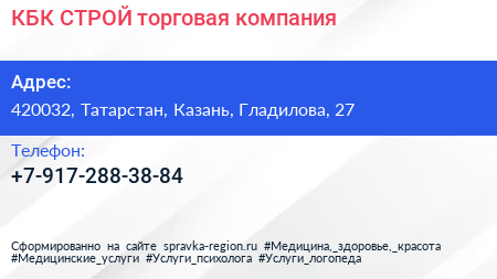КБК-СТРОЙ, торговая компания по адресу 420032, Татарстан, Казань, Гладилова, 27 в дальнейшем Организация, размещена в следующих категориях: