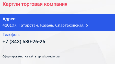 Картли, торговая компания по адресу 420107, Татарстан, Казань, Спартаковская, 6 в дальнейшем Организация, размещена в следующих категориях: