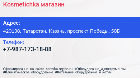 Kosmetichka, магазин по адресу 420138, Татарстан, Казань, проспект Победы, 50Б в дальнейшем Организация, размещена в следующих категориях: