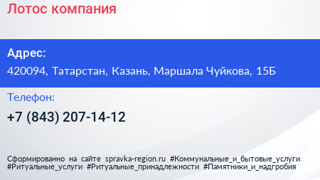 Лотос, компания по адресу 420094, Татарстан, Казань, Маршала Чуйкова, 15Б в дальнейшем Организация, размещена в следующих категориях: