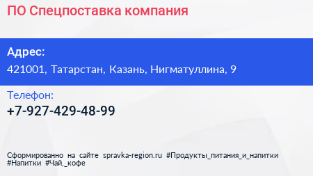 ПО Спецпоставка, компания по адресу 421001, Татарстан, Казань, Нигматуллина, 9 в дальнейшем Организация, размещена в следующих категориях:
