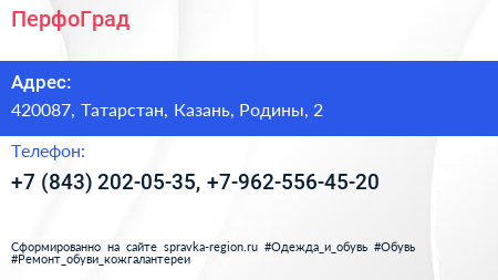 ПерфоГрад по адресу 420087, Татарстан, Казань, Родины, 2 в дальнейшем Организация, размещена в следующих категориях: