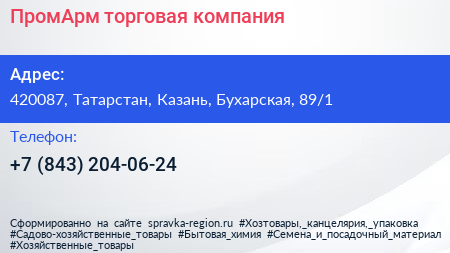 ПромАрм, торговая компания по адресу 420087, Татарстан, Казань, Бухарская, 89/1 в дальнейшем Организация, размещена в следующих категориях: