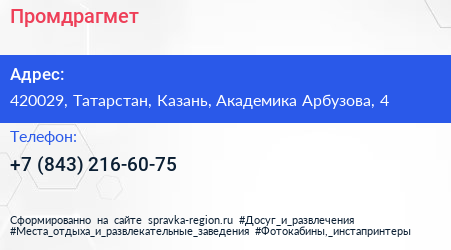 Промдрагмет по адресу 420029, Татарстан, Казань, Академика Арбузова, 4 в дальнейшем Организация, размещена в следующих категориях: