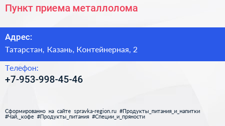 Пункт приема металлолома по адресу Татарстан, Казань, Контейнерная, 2 в дальнейшем Организация, размещена в следующих категориях: