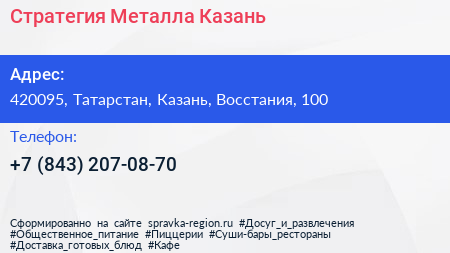 Стратегия Металла Казань по адресу 420095, Татарстан, Казань, Восстания, 100 в дальнейшем Организация, размещена в следующих категориях:
