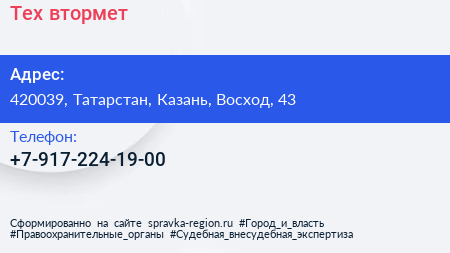 Тех втормет по адресу 420039, Татарстан, Казань, Восход, 43 в дальнейшем Организация, размещена в следующих категориях:
