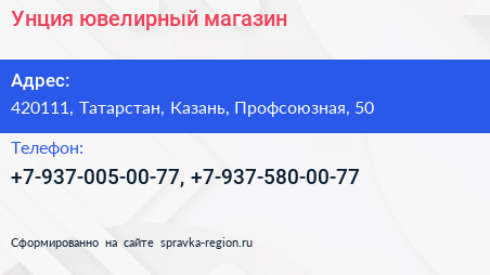 Унция, ювелирный магазин по адресу 420111, Татарстан, Казань, Профсоюзная, 50 в дальнейшем Организация, размещена в следующих категориях: